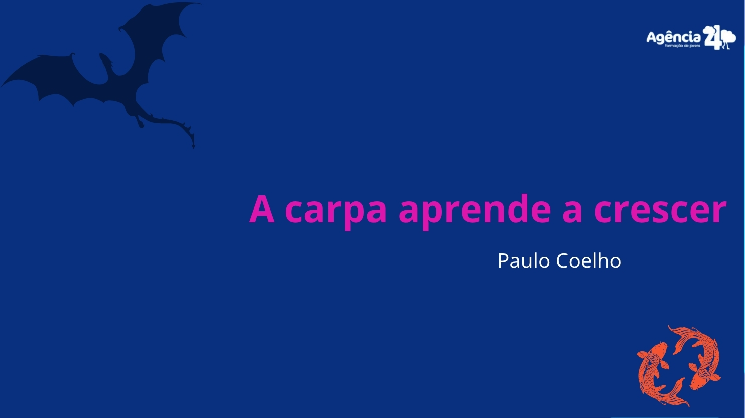 Da mesma maneira, as pessoas têm a tendência de crescer de acordo com o ambiente que as cerca. Só que, neste caso, não estamos falando de características físicas, mas de desenvolvimento emocional, espiritual e intelectual. Enquanto a carpa é obrigada, para seu próprio bem, a aceitar os limites do seu mundo, nós estamos livres para estabelecer as fronteiras de nossos sonhos.